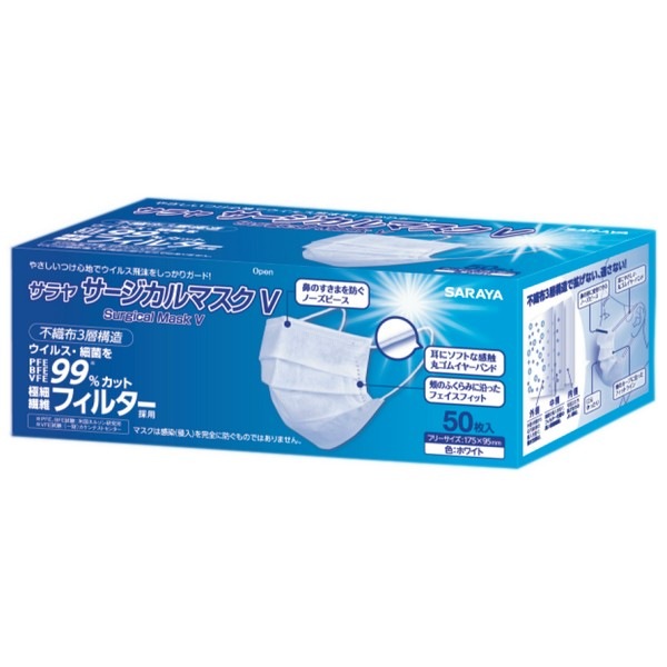 サラヤ サージカルマスクV フリーサイズ ホワイト 50枚