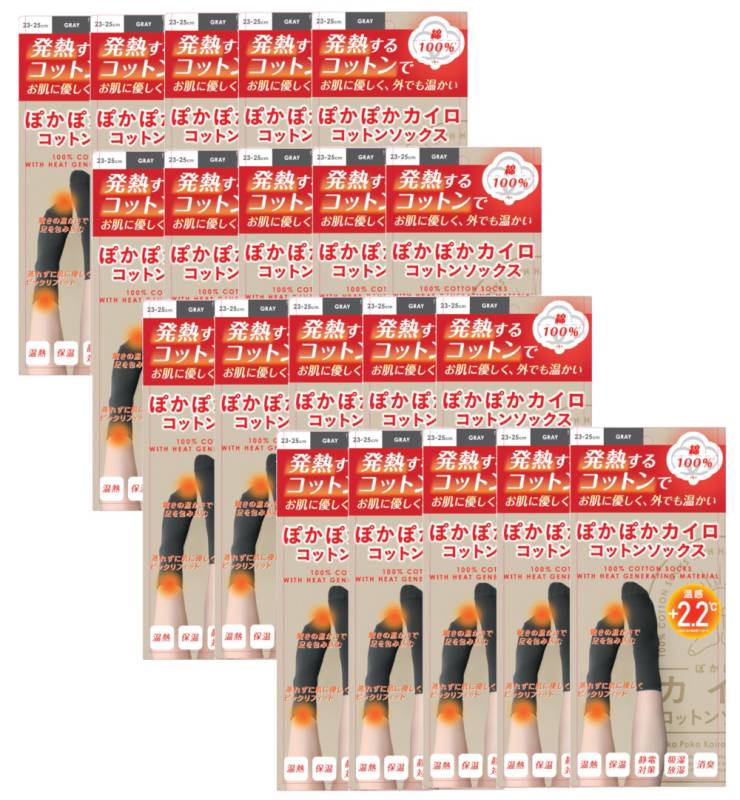 ぽかぽかカイロコットンソックス CO01 GRAY<23~25cm> ×20【20個セット】送料無料 靴下 くつした 足先 冷...