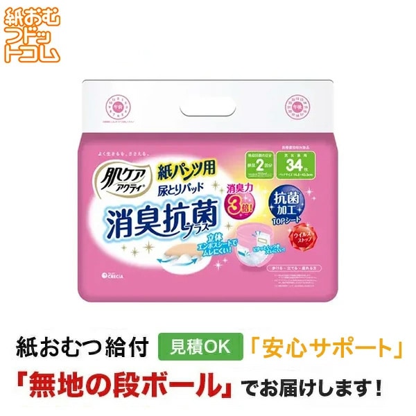 肌ケア アクティ 紙パンツ用尿取りパッド消臭抗菌プラス 2回分 34枚 紙おむつ尿とりパッド