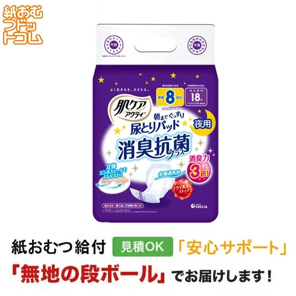 肌ケア アクティ 尿取りパッド消臭抗菌プラス 8回分 18枚 紙おむつ尿とりパッド
