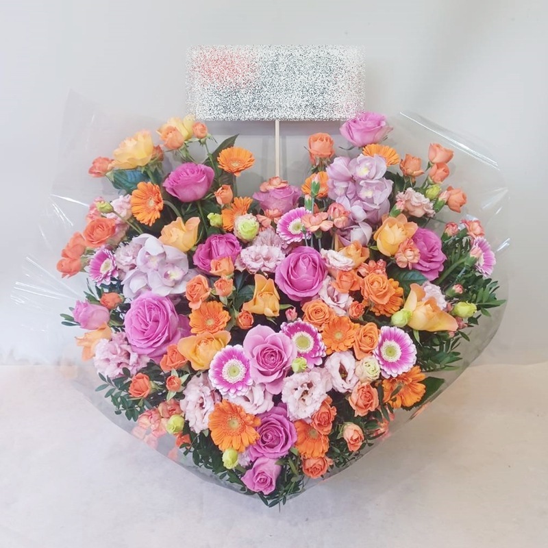 アレンジメント aren-250179 ハート型!ピンクオレンジ系
