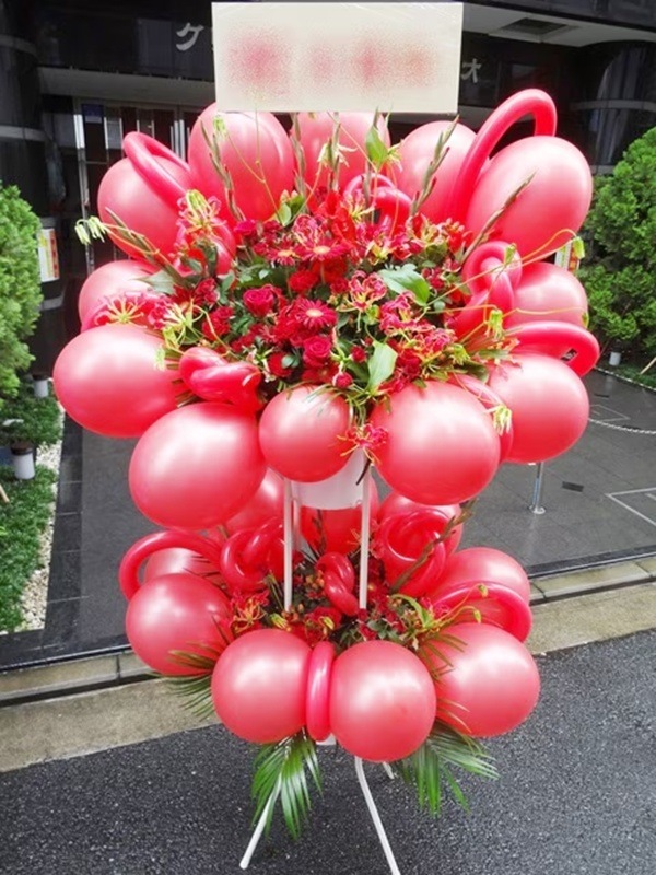 BST2-022 エリア限定商品!東京・神奈川・千葉・埼玉(詳しくはご確認ください) レッド系 バルーン スタンド花2段
