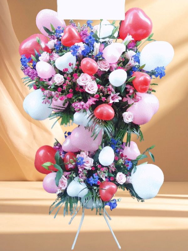 BST2-033 エリア限定商品!東京・神奈川・千葉・埼玉(詳しくはご確認ください) ピンク&ホワイト系 バルーン スタンド花2段