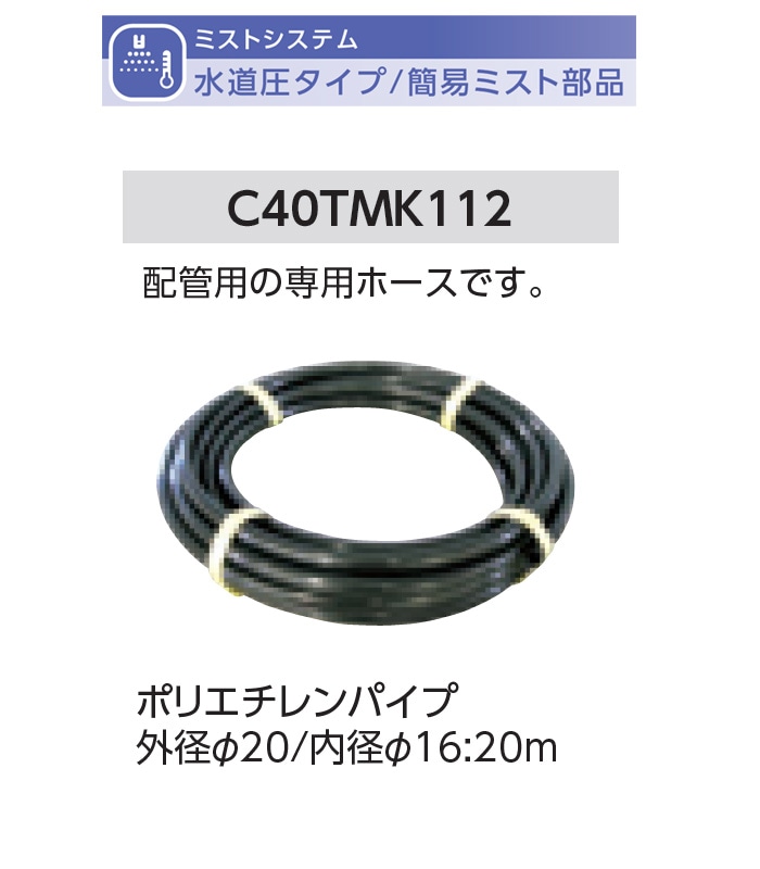 ポリエチレンパイプ 外径φ20/内径φ16:20m 型式名:C40TMK112【簡易ミストオプション部品(水道圧タイプ) グローベ...