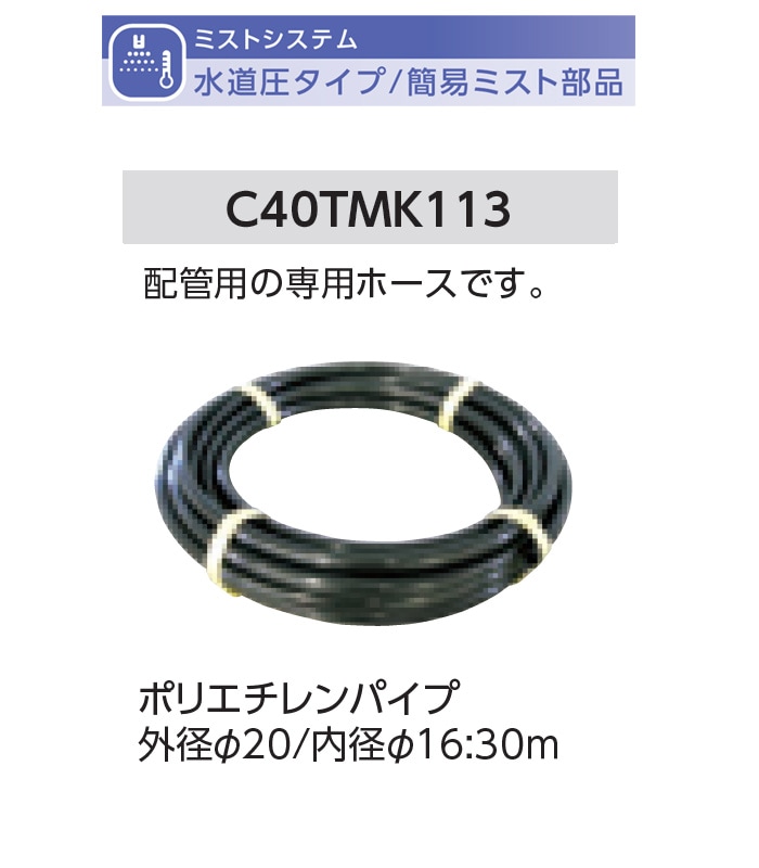 ポリエチレンパイプ 外径φ20/内径φ16:30m 型式名:C40TMK113【簡易ミストオプション部品(水道圧タイプ) グローベ...