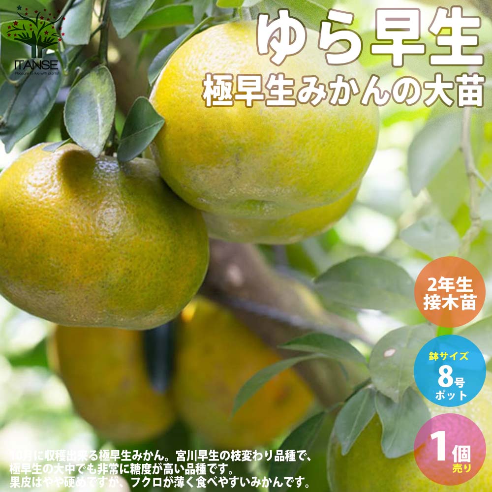 極早生みかんの大苗 ゆら早生 【果樹の苗木 8号鉢 接木苗/1個売り】