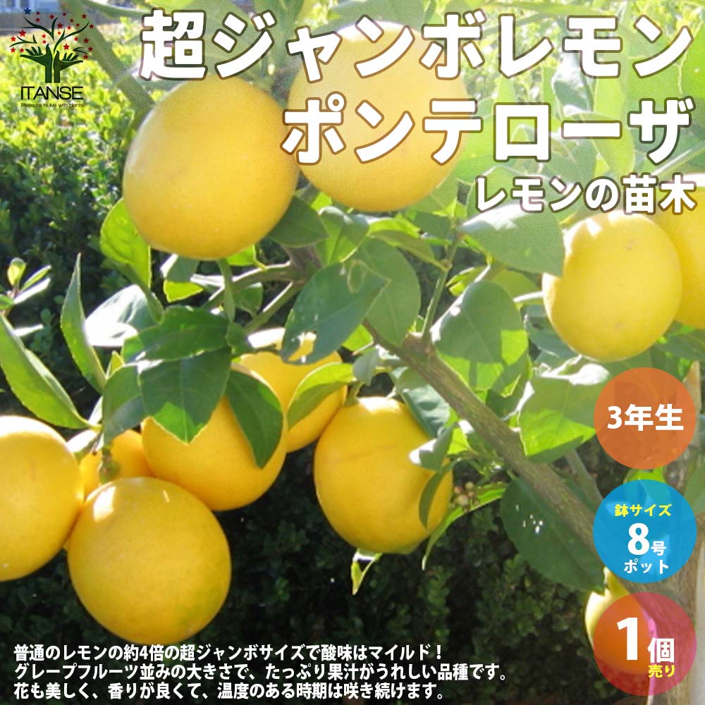 超ジャンボレモン・ポンテローザ 【果樹の苗木 8号鉢 3年生苗 挿し木苗/1個売り】