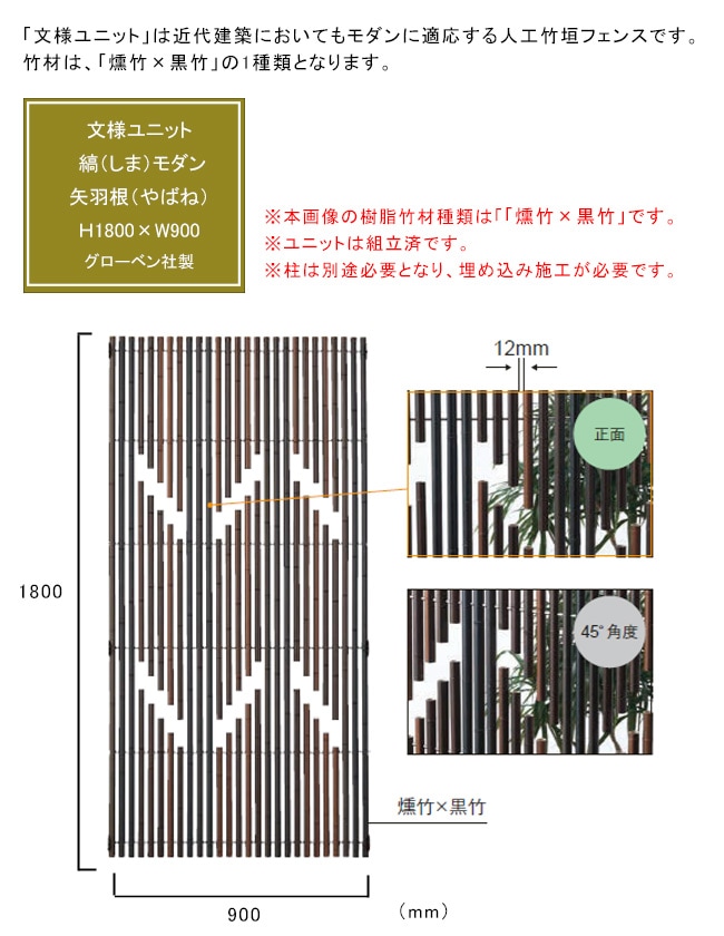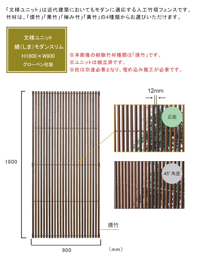 【人工 竹垣】建仁寺垣 タイプC 基本部材セット 高さ1800mm 両面張り【和風 目隠し 樹脂 フェンス】