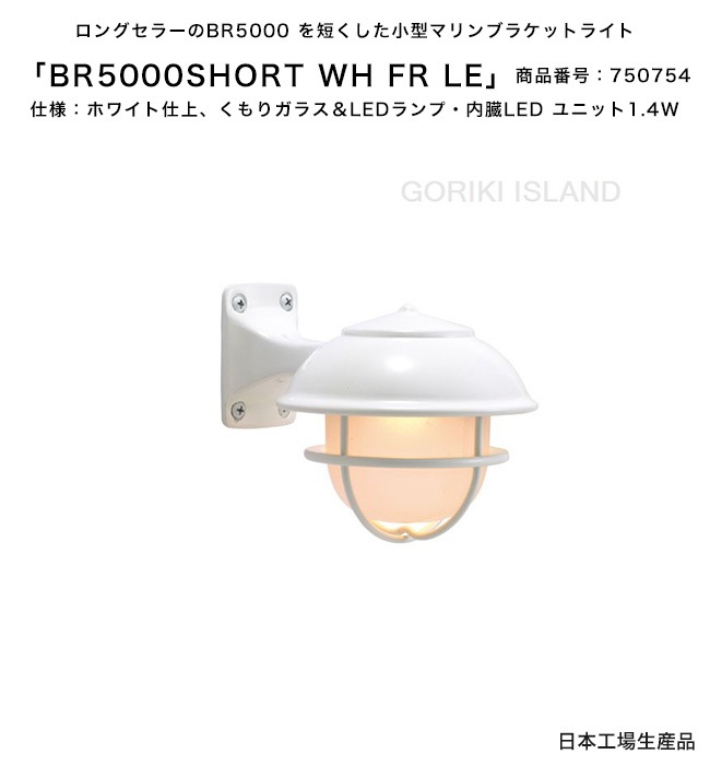 BR5000SHORT WH FR LE(色:WH)商品番号:750754/仕様:ホワイト仕上げ、くもりガラス&LEDランプ・内臓...