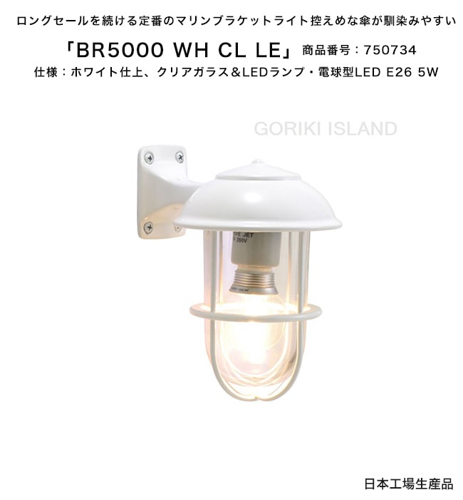 BR5000 WH CL LE(色:WH)商品番号:750734/仕様:ホワイト仕上げ、クリアガラス&LEDランプ・電球型LED ...
