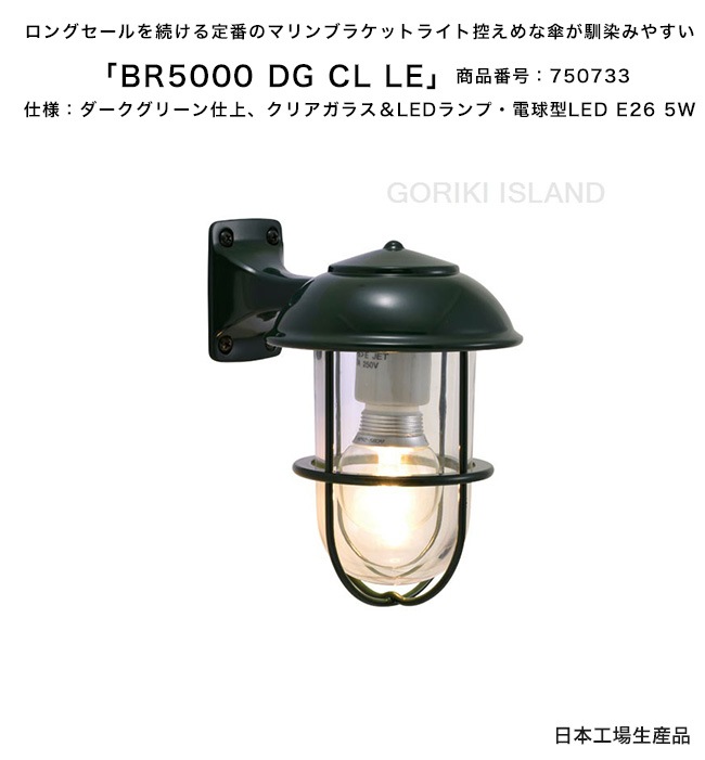 BR5000 DG CL LE(色:DG)商品番号:750733/仕様:ダークグリーン仕上げ、クリアガラス&LEDランプ・電球型L...