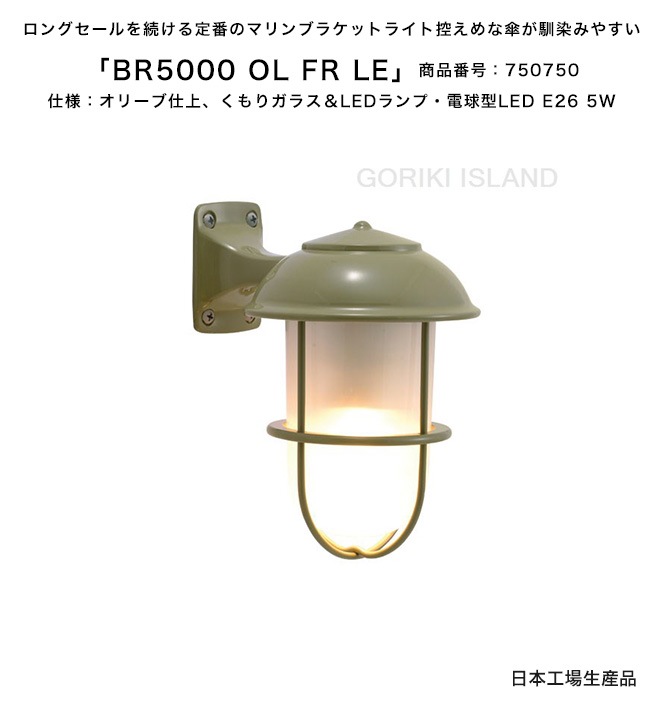 BR5000 OL FR LE(色:OL)商品番号:750750/仕様:オリーブ仕上げ、くもりガラス&LEDランプ・電球型LED ...