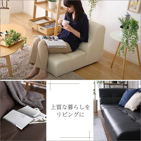 1人掛ソファ(PVCレザー)5段階リクライニング、フロアソファ、カウチソファに 日本製|Rugano-ルガーノ- SH-07-RG...
