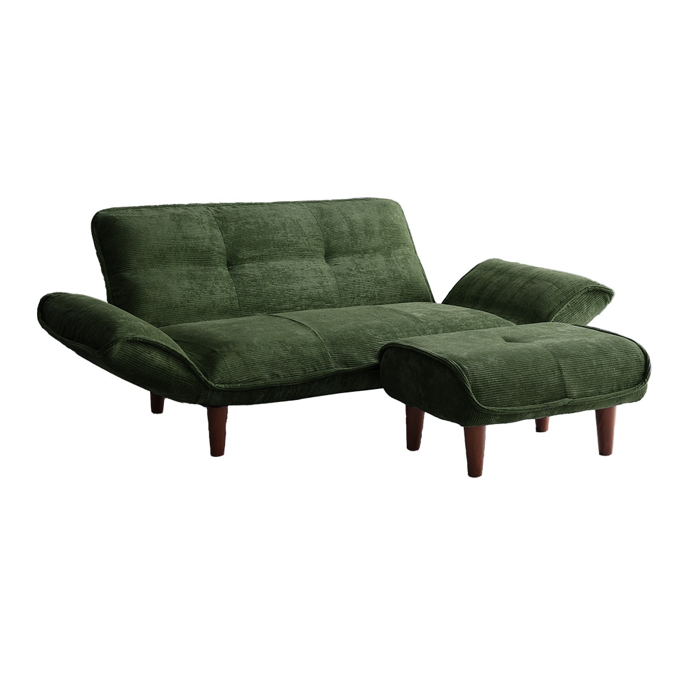 肌触りが良いコーデュロイソファ 2人掛け オットマンセット【Qooliss-クーリス-】SH-07-CDS-S-GE グリーン