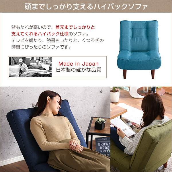 1人掛ハイバックソファ(布地)ローソファにも、ポケットコイル使用、3段階リクライニング 日本製|lemmik-レミック- SH-0...