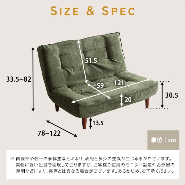 2Pリクライニング コーデュロイソファ【MOLFA-モルファ-】SH-07-3CS-GE グリーン