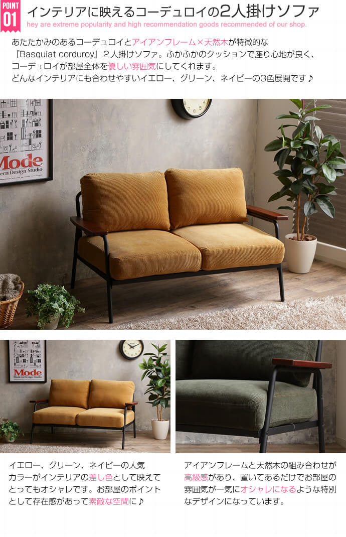 Basquiat corduroy 2人掛けコーデュロイソファ 118006_YE イエロー