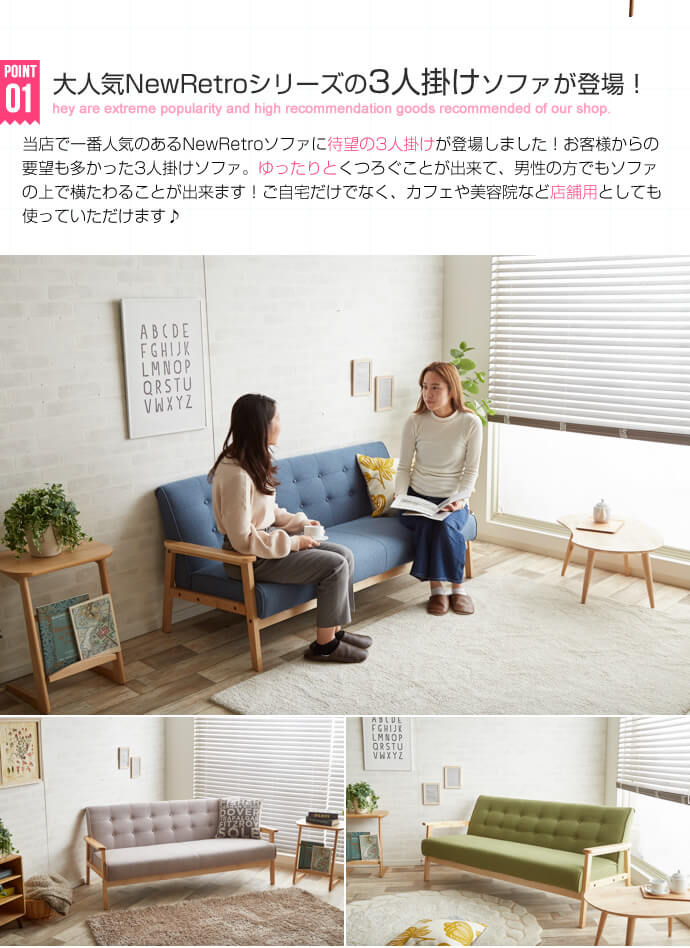 NEW RETRO オリジナル 3人掛けソファ 107003_BE ベージュ