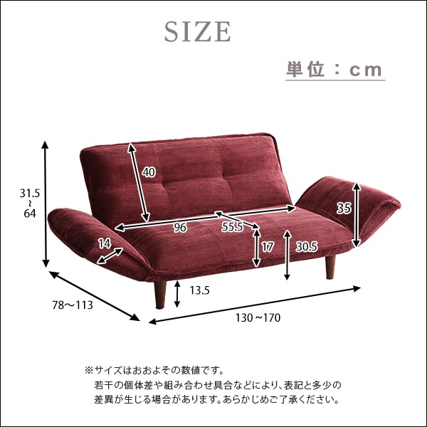 2Pリクライニング コーデュロイソファ【MOLFA-モルファ-】SH-07-3CS-RD レッド