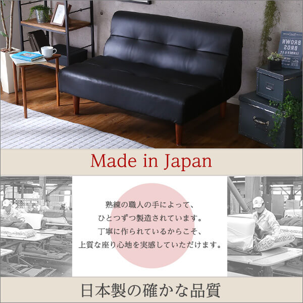 2人掛ハイバックソファ(PVCレザー)ローソファにも、ポケットコイル使用、3段階リクライニング 日本製Comfy-コンフィ- SH...