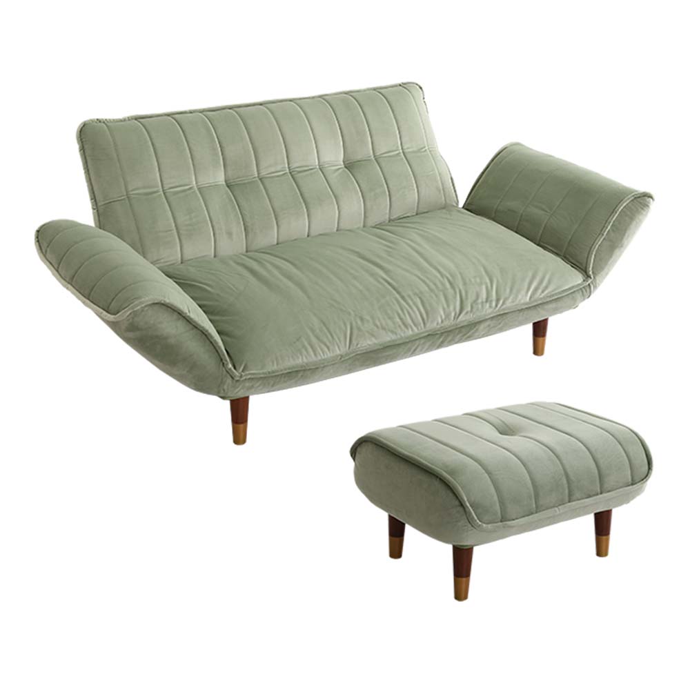 大人かわいいインテリア ベロアカウチソファ 2人掛け+オットマンセット【Chammy -チャミー-】SH-07-OKBA2P-S-...