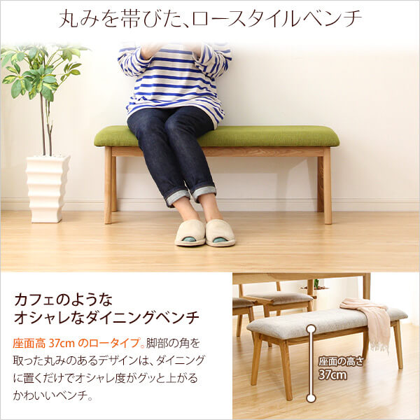 ダイニングチェア単品(ベンチ) ナチュラルロータイプ 木製アッシュ材|Risum-リスム- SH-01RIS-B-GE グリーン