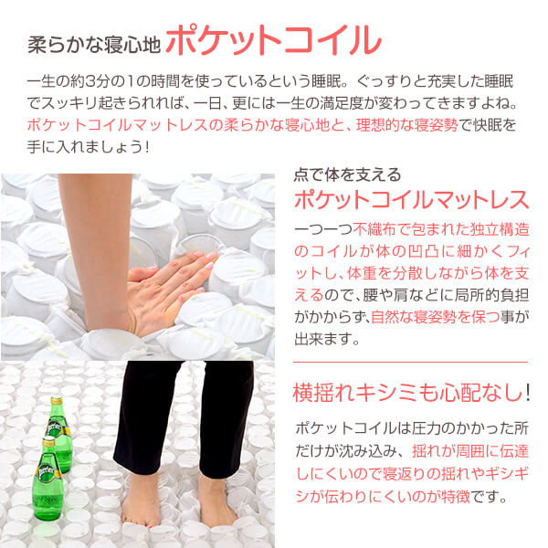 脚付きマットレスベッド【-Ilene-イレーヌ】(ポケットコイル・セミダブル用)移動がラクな分割式タイプ! BMT-02SD-PK...