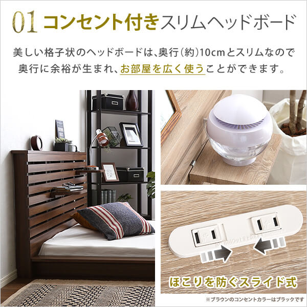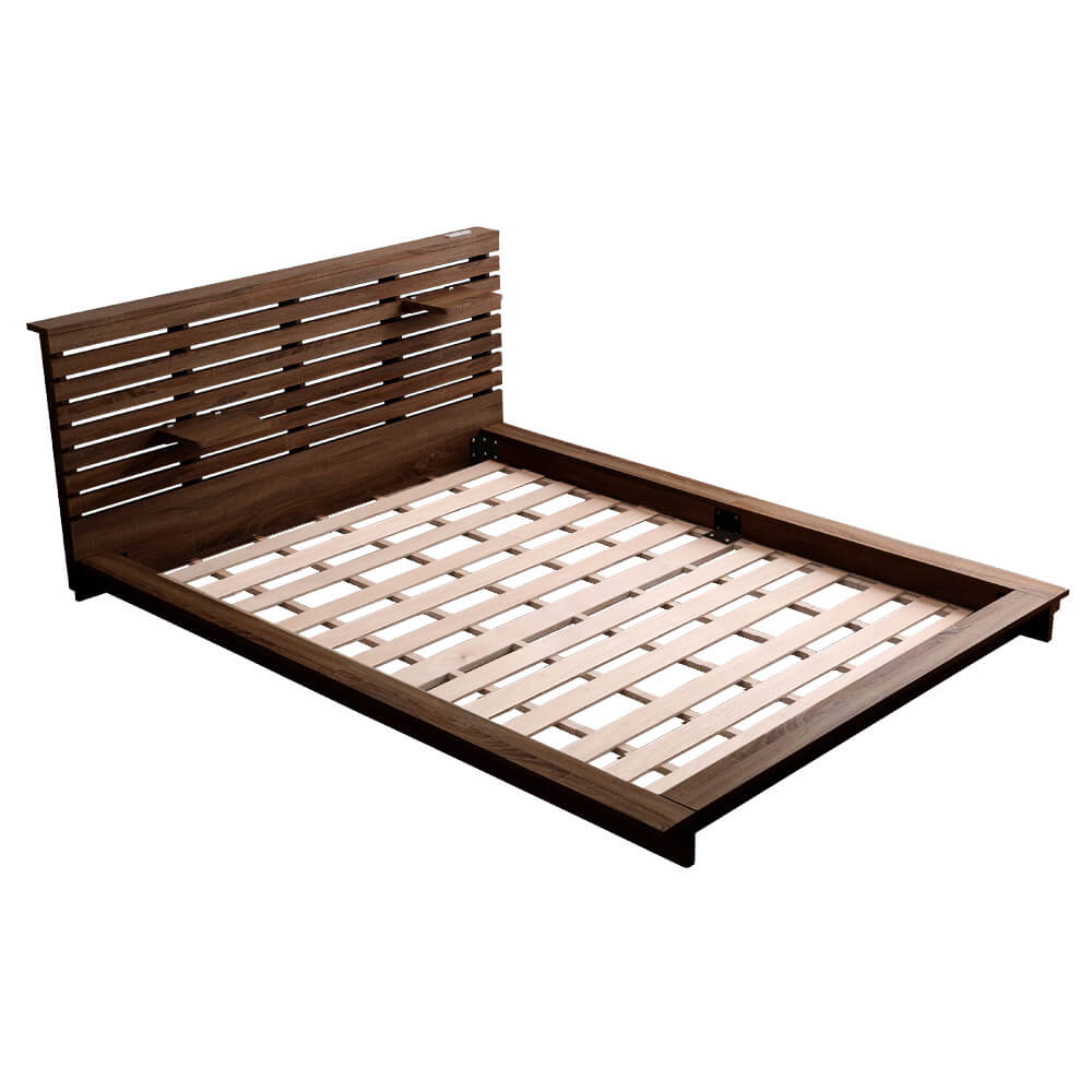 可動棚付きフロアベッド(ダブル)ベッドフレーム、ロースタイル、スリムヘッドボード|Elfom エルフォム HT-NK01D-BR ...