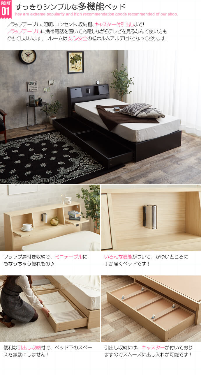 組立簡単 シングルベッド ベッドフレーム シングル すのこベッド 宮棚 コンセント付