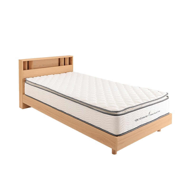 モダン ベッド ホワイト シングル ポケットコイルマットレス付き すのこ 棚付き コンセント付き スマホスタンド 頑丈 木製 シ...