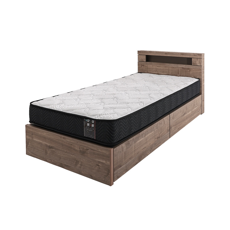 Office168厳選ベッド シングル ポケットコイルマットレス付き グレージュ 収納付き 引き出し付き 棚付き 宮付き コンセン...