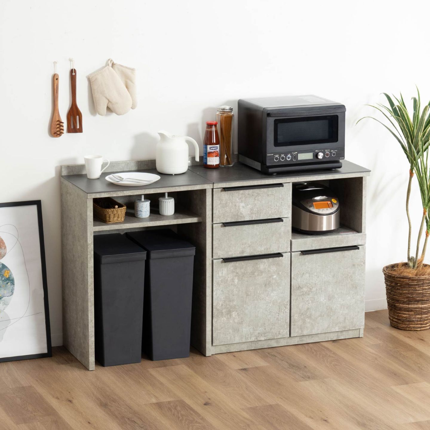 [幅150] オレゴン | セラミック キッチンカウンター 収納 大容量 ゴミ箱スペース