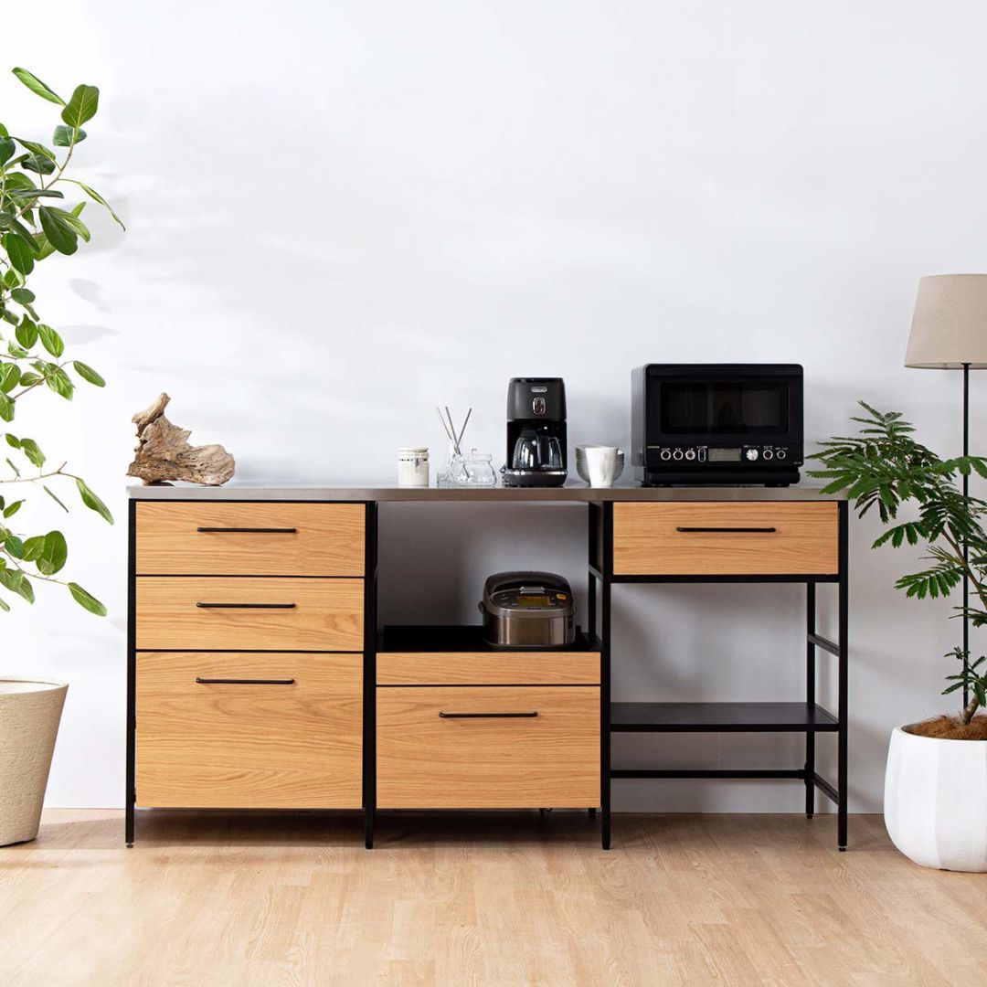 [143幅] キッチンカウンター ステンレス アイアン キッチンボード ユニット式 木製 北欧 カップボード レンジ台 コンセント...