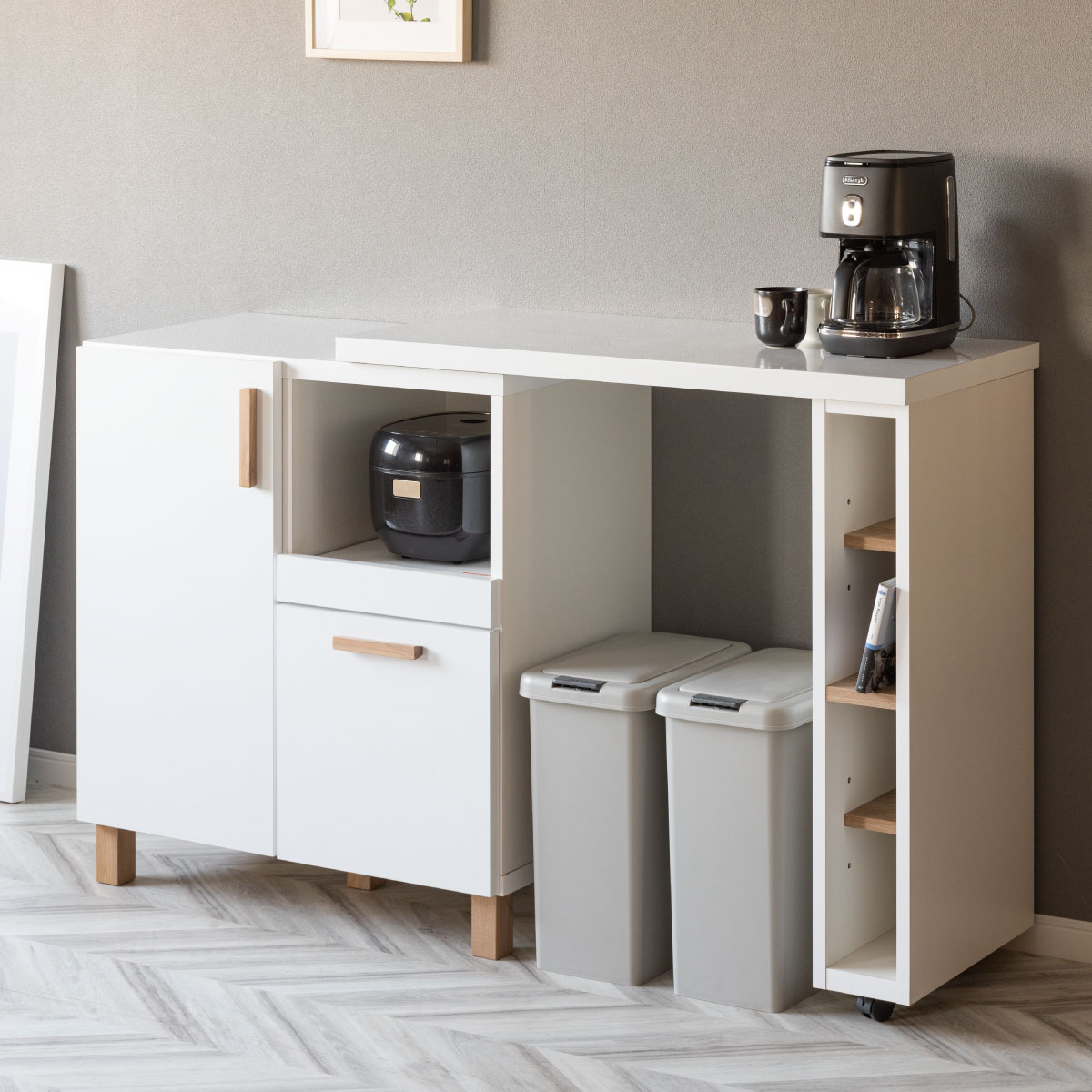 [幅95-165] オフ | 伸長式 キッチンカウンター 収納 大容量 ゴミ箱スペース
