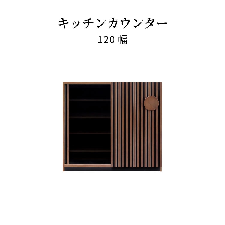 [幅120]キッチンカウンター ウォールナット 突板 ブラウン 縦格子 和モダン