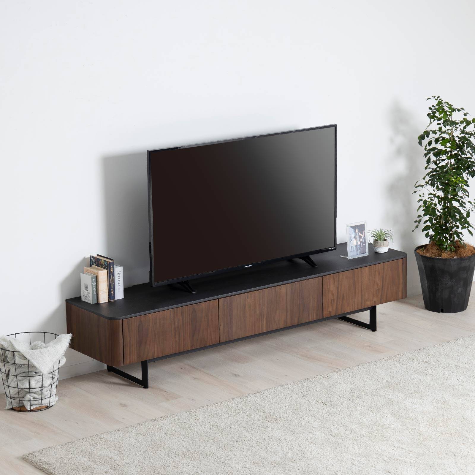 [幅180] テレビボード 耳付き ウォールナット 木目調 アイアン脚 テレビ台