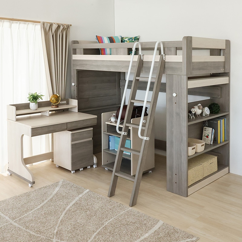 ロフトベッド ソラリオ GYB+デスク+上棚+ワゴン+ランドセルラック WH【大型商品配送】※単品販売有