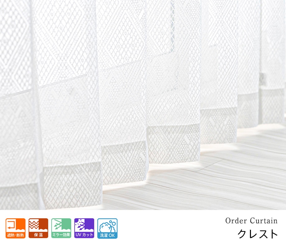エレガントな菱形デザインのUVカットミラーレースカーテン「クレスト」ホワイト