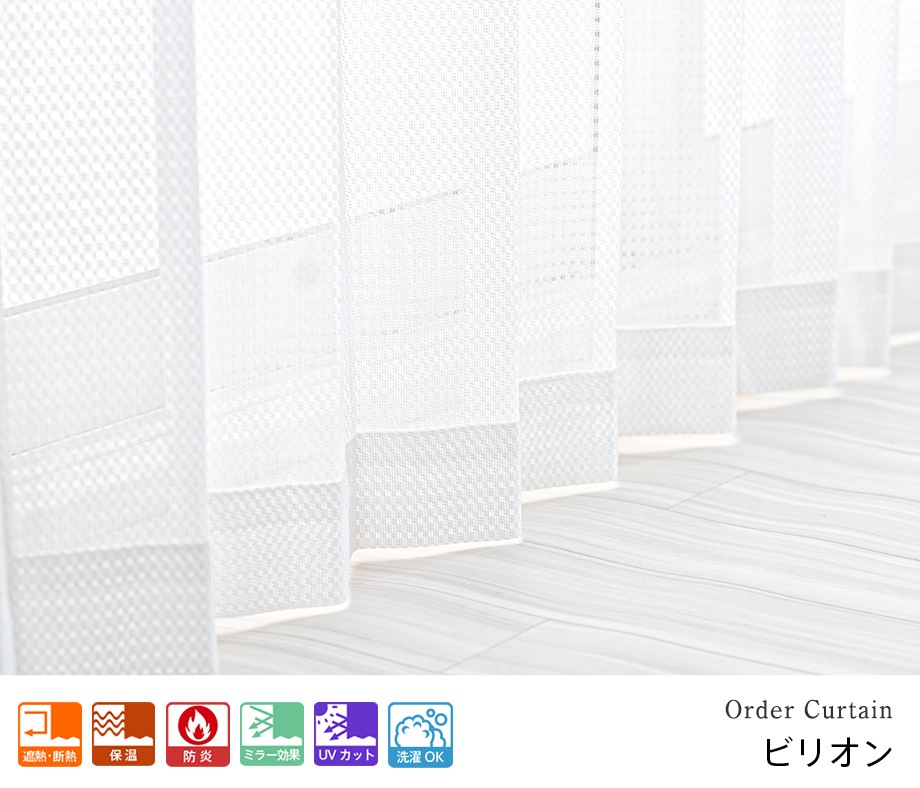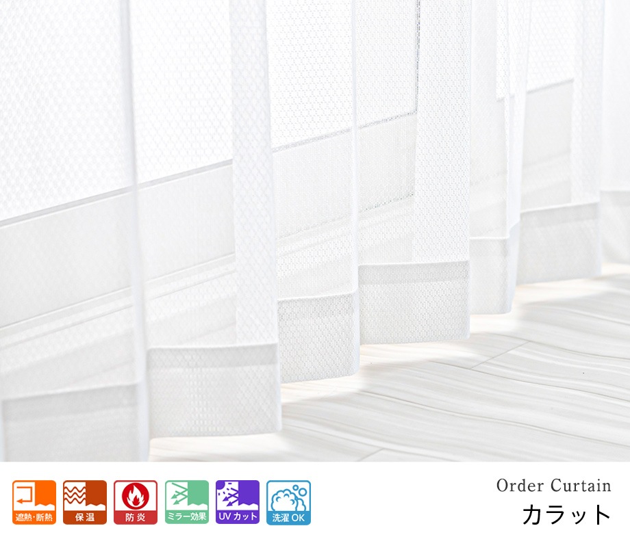 合わせやすい無地柄の防炎UVカットミラーレースカーテン「カラット」ホワイト