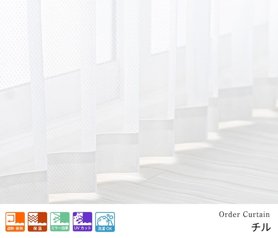 合わせやすい無地柄のUVカットミラーレースカーテン「チル」ホワイト