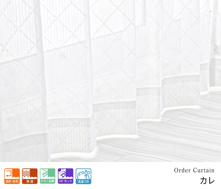 大きいダイヤ柄のUVカットミラーレースカーテン「カレ」ホワイト