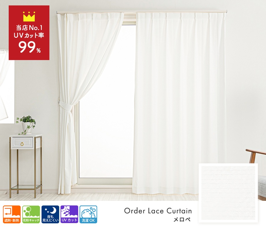 UVカット率約99% 紫外線を最大限にカットできる遮像レースカーテン「メロペ」ホワイト