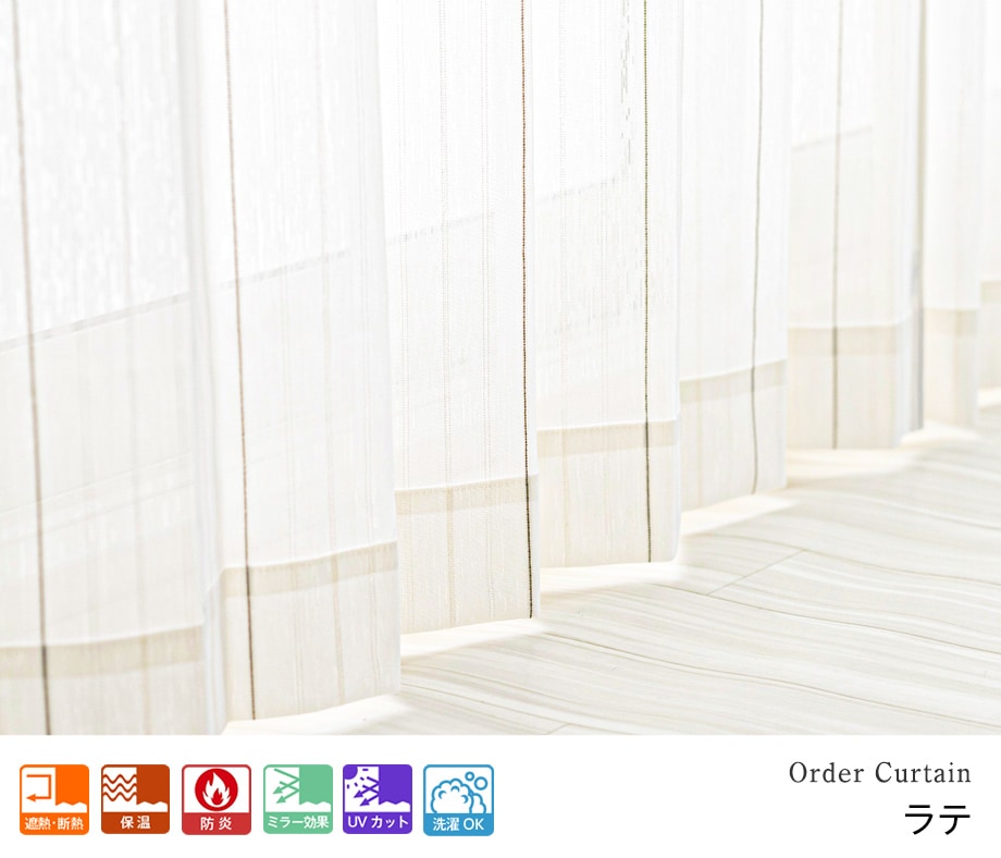 ふわりと柔らかい手触りを持つライン模様の遮像レースカーテン「サラサ」ホワイト