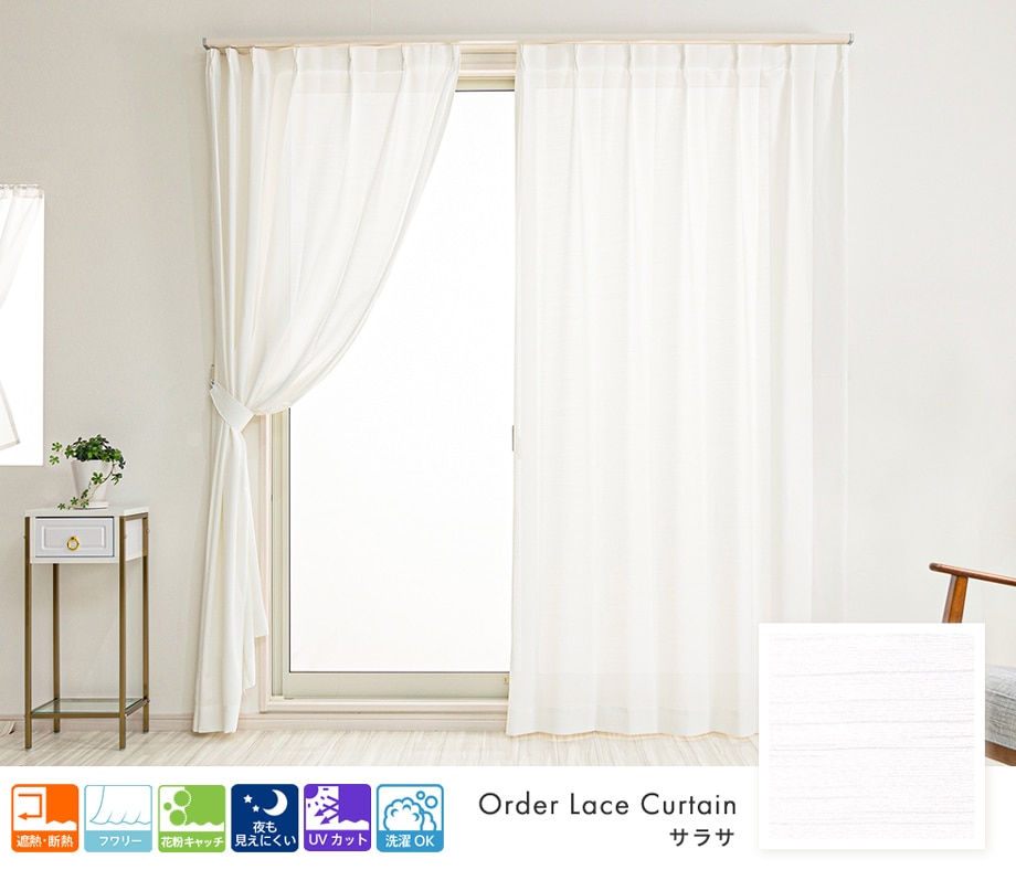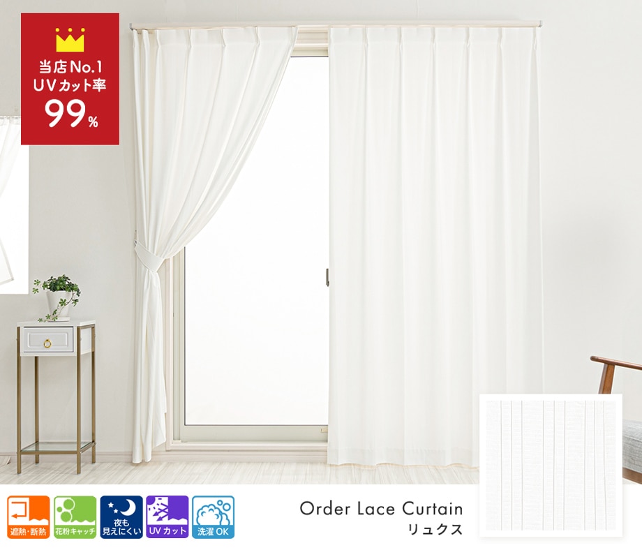 UVカット率約99% 紫外線を最大限にカットできる遮像レースカーテン「リュクス」ホワイト