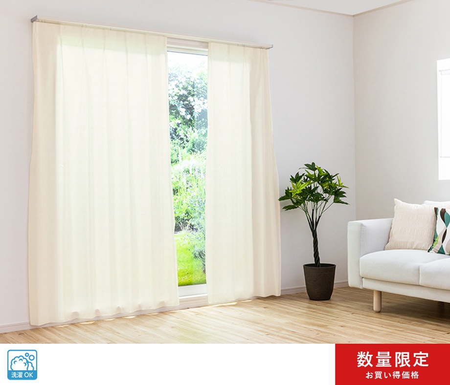 ふわりと柔らかい手触りを持つ無地の遮像レースカーテン「スフレ」アイボリー