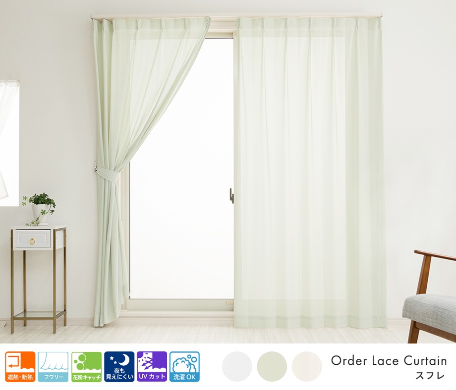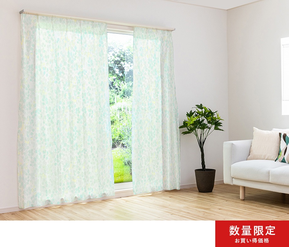 淡いトーンの清涼感あふれるレースカーテン「ベリル」グリーン