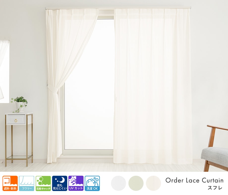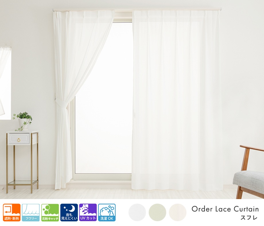 ふわりと柔らかい手触りを持つ無地の遮像レースカーテン「スフレ」ホワイト