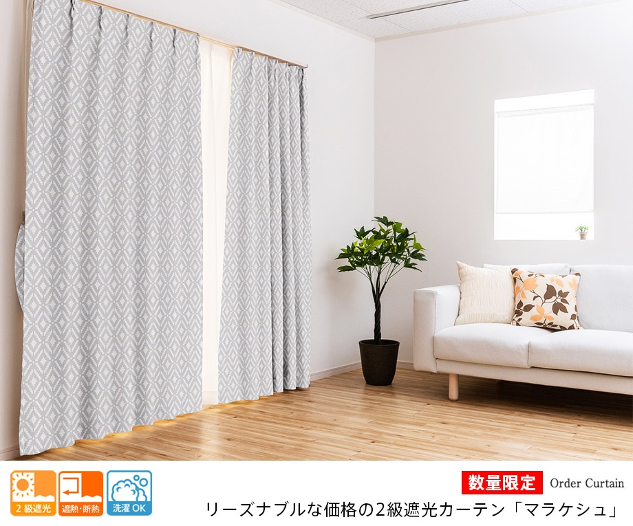 数量限定でお買い得価格の2級遮光カーテン「マラケシュ」(グレー)