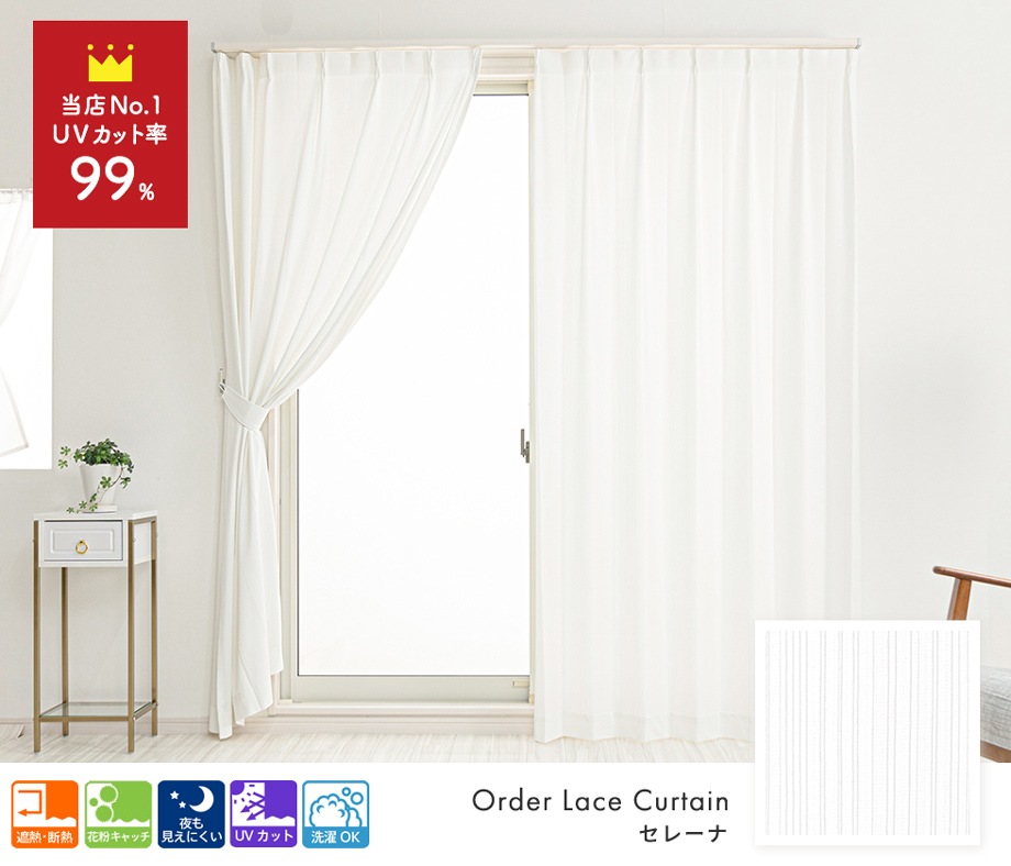 UVカット率約99% 紫外線を最大限にカットできる遮像レースカーテン「セレーナ」ホワイト