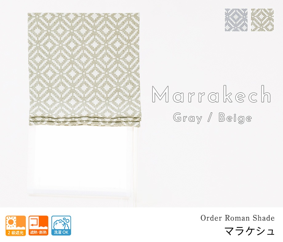 モダンな幾何学模様の2級遮光ダブルシェード「マラケシュ」ベージュ